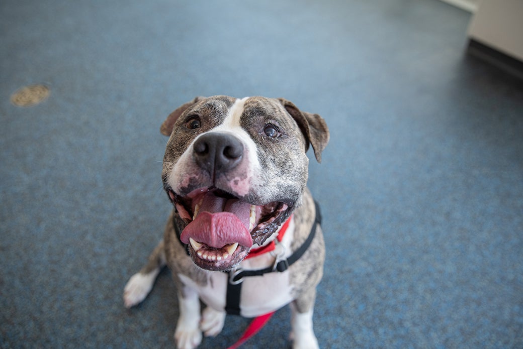 Chief loves to play, he’s always ready to romp around and chase tennis balls. But the one thing he loves more than playtime is his people! Even though he’s a big dude, Chief believes he’s a lap dog and will plop right into anyone and everyone’s lap.