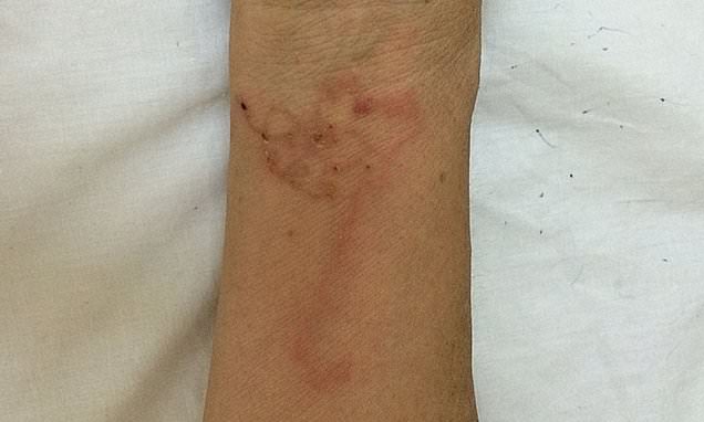 Grim images show the creatures burrowing in the unidentified 58-year-old’s arms, legs and hands.
